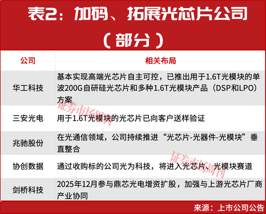 此外,还有不少公司通过收购、增资等方式加码光芯片(见表2)。如协创数据,通过收购标的公司光为科技,将进入光芯片、光模块赛道。协创数据近期的股价表现连连新高,在4月14日发布一季度业绩预增284.14%-402.33%的利好后,已上涨超50%。