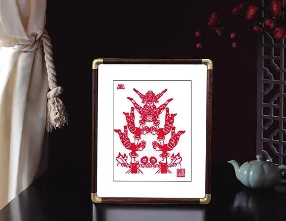 此外,王建才的蛋壳雕刻摆台、烙画茶叶筒,以传统烙画技艺雕琢杂技文化;吕凤玲的草编颈椎枕、养生枕及茶几边凳,将桑蚕文化与杂技元素巧妙结合;刘德立的工艺玻璃狮子、龙头大刀,以玻璃工艺还原杂技道具神韵;徐桂亮的葫芦烙画、摆件等,将杂技元素融入创作;白金磊的《吴桥杂技》《铁狮子》系列剪纸,以多层套色技艺呈现非遗魅力;宋艳丽的毛线编织品针脚精微,形象别致;古光辉、耿兰兰、王利强的陶瓷彩绘争奇斗艳;张克祯的篆刻系列,涵盖“敦品修学”“马到成功”等主题,以方寸印章传递文化内涵……