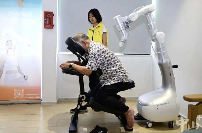 自适应按摩机器人最近在东区街道工人文化宫上线,为市民服务。