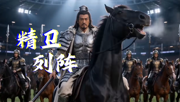 何润东身着战甲,乘坐复古战马采用“铁骑绕场”的方式登场,绕赛场一周,沿途向观众挥手致意,马蹄声铿锵有力,仿佛穿越千年,让霸王的霸气席卷整个赛场,点燃每一位球迷的热情。