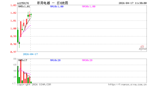 家电ETF华宝(159176)业绩比较基准为中证全指家用电器指数收益率,管理人为华宝基金管理有限公司,基金经理为胡一江,成立(2026-03-26)以来回报为2.10%。