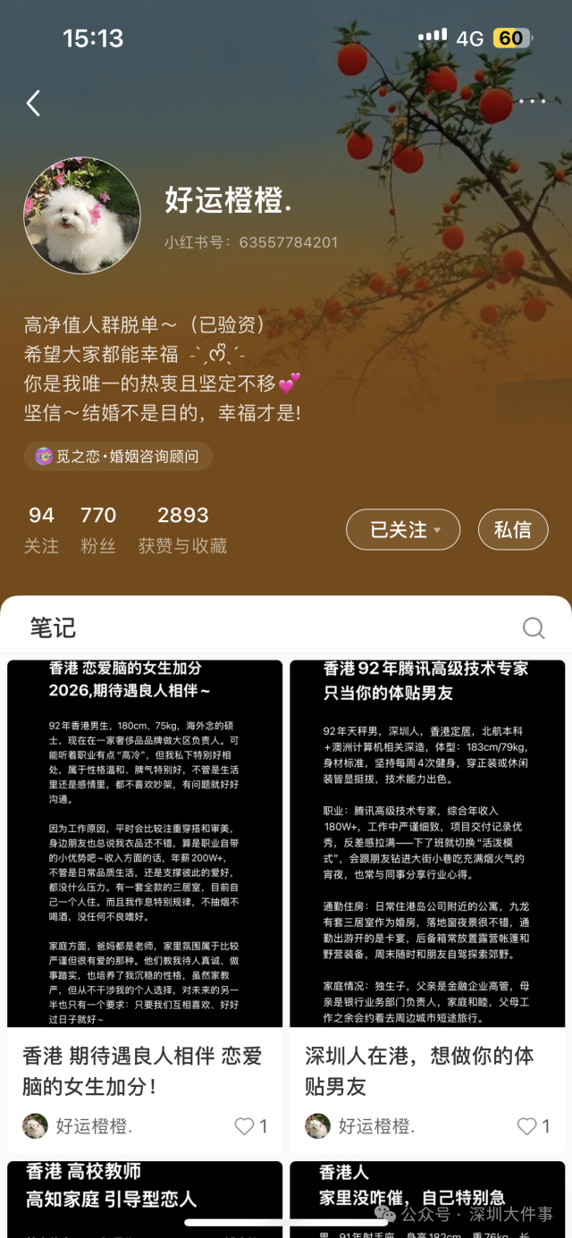 00后体制内女青年桃子,则是深圳“爱渡”系婚介机构“浪漫邂逅”的客户。