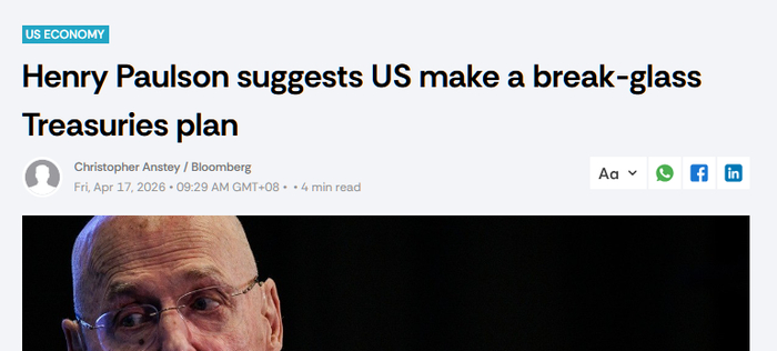 【环球网财经综合报道】据彭博社报道,曾带领美国度过2008年金融危机的美国前财政部长亨利·保尔森,周四对美债市场发出严厉警告,敦促政策制定者制定一项紧急计划,以防范国债需求可能出现的崩溃性下滑。