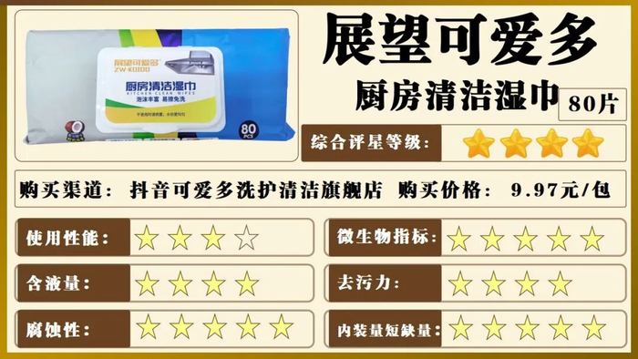 为帮助消费者科学选购优质商品,深圳市消委会开展厨房湿巾比较试验,由工作人员以普通消费者身份从线上、线下共选购20款厨房湿巾样品,单包价格(样品规格不同)从4.17元~14.84元不等。
