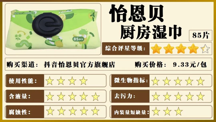 4.苏软软和KINBATA两款品牌样品不符合GB/T 27728.1-2024《湿巾及类似用途产品第1部分:通用要求》标准要求,不参与综合评星。