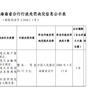 4月17日金融一线消息,中国人民银行海南省分行行政处罚决定信息公示表显示,定安合丰村镇银行因违反账户管理规定;违反金融统计相关规定;违反反假货币业务管理规定;未按照规定报告大额交易,被中国人民银行海南省分行警告 , 罚款26.75万元。