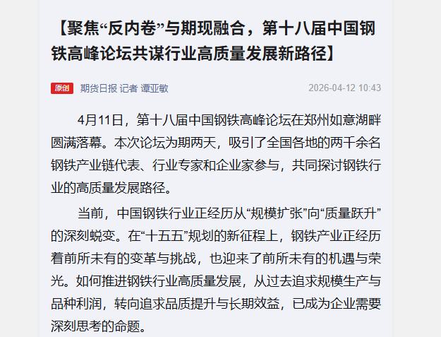 如今,第十八届中国钢铁高峰论坛虽已圆满落幕,但随着各大媒体的持续报道与深度解读,峰会的影响力仍在持续发酵,余温未减,热议正酣。
