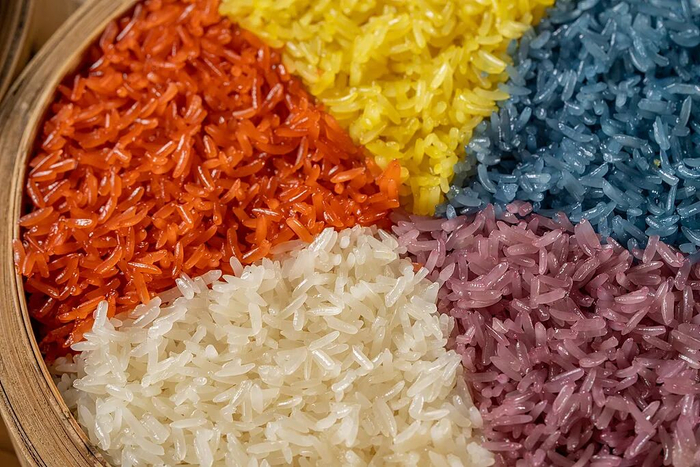 壮族通常在“三月三”蒸五色糯米饭