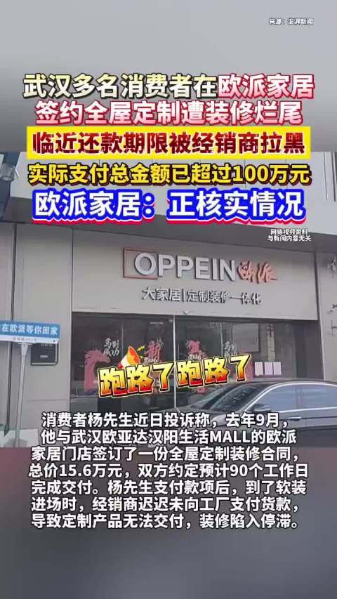 多名消费者称全屋定制遭遇装修烂尾,欧派家居:正核实情况#欧派家居