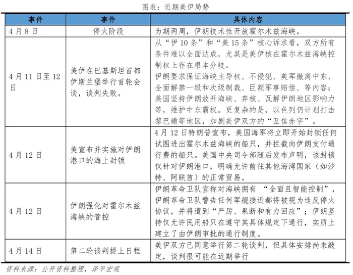 当前,美伊局势已经从2月的全面军事对抗,转为“边对峙、边谈判”状态。4月8日,美伊冲突进入停火阶段、为期两周,伊朗技术性开放霍尔木兹海峡;4月11日至12日,双方在巴基斯坦首都伊斯兰堡举行首轮会谈,谈判失败,美国和伊朗核问题和霍尔木兹海峡控制权上存在根本分歧;随后特朗普宣布并实施对伊朗港口海上封锁、实施“经济绞杀”,伊朗则以反封锁警告和区域安全威胁相抗衡。