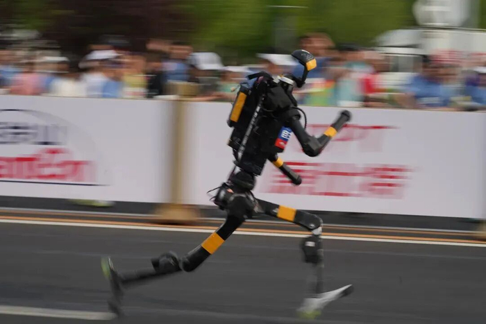 在去年的比赛中,天工队选手天工Ultra作为首个人形机器人率先冲过终点线,整场比赛总用时2小时40分钟左右。按加权前比赛用时来算,比去年首个冲线机器人用时提高约1小时50分钟。