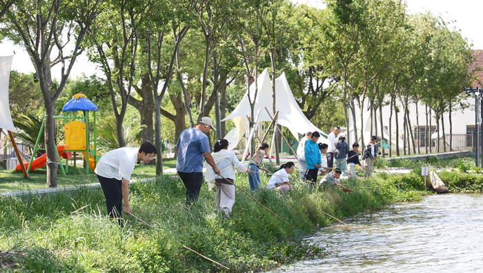 除了规模化养殖,休闲垂钓也提前“火”了。在百步横港村小禾农场,30亩龙虾垂钓区里坐满了游客,享受着钓虾乐趣。