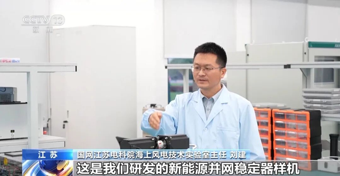 国网江苏电科院海上风电技术实验室高级专家 汪成根:这一块是新能源长距离高效经济并网装备,能实现百公里级深远海风电的高效并网。另一套装备是今年刚刚并网的新能源并网稳定器。旁边还有一块预留区域,也要研制一套新能源的新型并网装备。