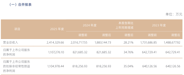 4月17日晚间,国信证券股份有限公司(下称“国信证券”,002736)发布2025年年度报告。年报显示,2025年国信证券实现营业总收入241.43亿元,同比增长28.21%;实现归属于上市公司股东的净利润110.73亿元,同比增长34.76%;归属于上市公司股东的扣除非经常性损益的净利润为110.50亿元,同比增长35.04%。