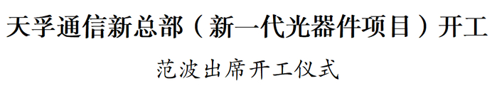市委书记范波出席天孚通信新总部(新一代光器件项目)开工仪式。