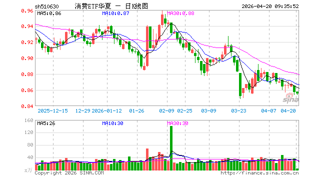 消费ETF华夏(510630)开盘涨0.12%,重仓股伊利股份跌0.16%,贵州茅台跌0.30%