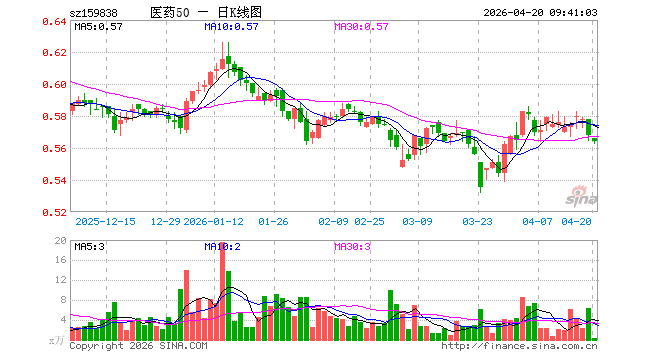 医药50ETF博时(159838)开盘跌0.35%,重仓股药明康德涨0.00%,迈瑞医疗跌0.16%