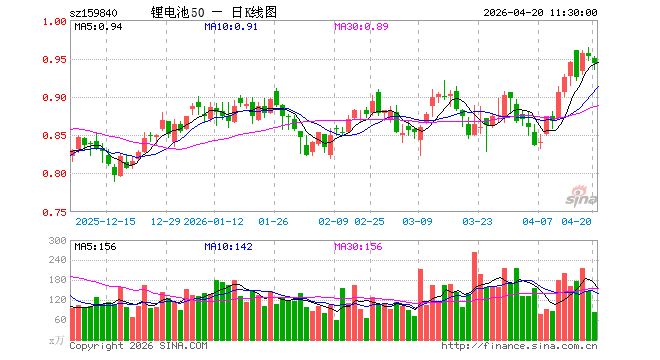锂电池ETF工银(159840)跌0.94%,半日成交额7832.75万元