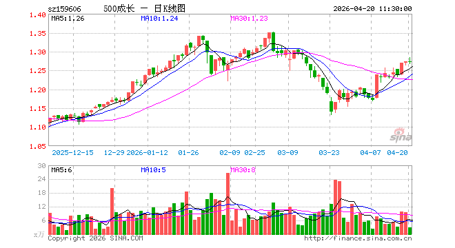 4月20日,截止午间收盘,中证500成长ETF易方达(159606)涨0.08%,报1.274元,成交额374.76万元。中证500成长ETF易方达(159606)重仓股方面,巨人网络截止午盘涨0.03%,西部矿业涨0.94%,天山铝业跌3.46%,厦门钨业涨1.65%,通富微电涨1.20%,宏发股份涨0.56%,杰瑞股份跌1.53%,睿创微纳跌0.12%,豪迈科技跌2.71%,春风动力跌2.31%。