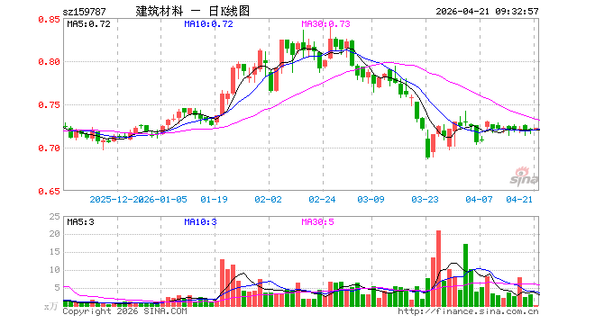 建材ETF易方达(159787)开盘涨0.00%,重仓股海螺水泥涨0.32%,东方雨虹涨0.26%