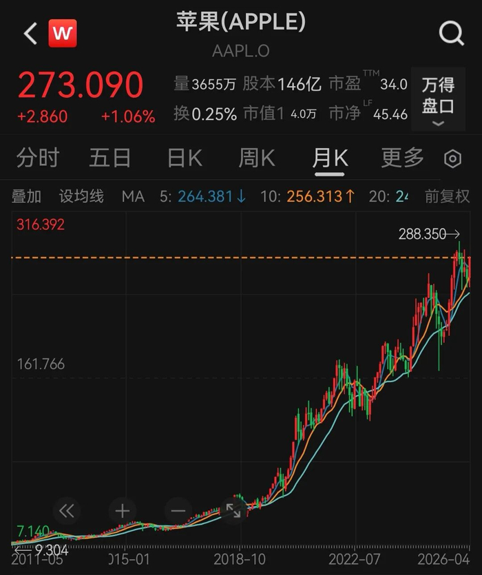 库克任职期间,苹果市值增长约24倍,周一收盘市值达4万亿美元。在近15年任期内,库克带领苹果进军可穿戴设备领域,推出Apple Watch、AirPods 以及虚拟现实头显 Vision Pro等产品。