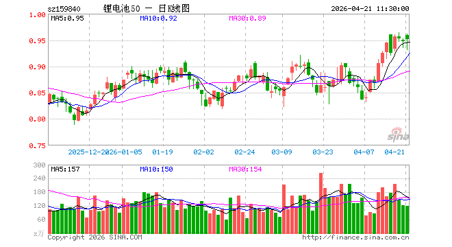 锂电池ETF工银(159840)涨0.42%,半日成交额1.14亿元