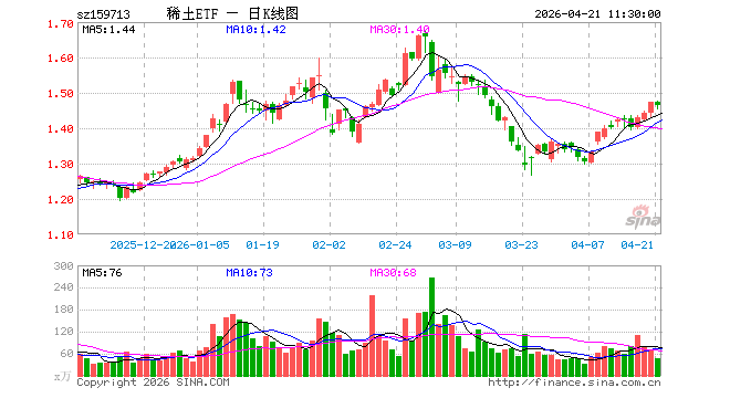 4月21日,截止午间收盘,稀土ETF富国(159713)跌0.48%,报1.465元,成交额7039.17万元。稀土ETF富国(159713)重仓股方面,北方稀土截止午盘跌0.47%,金风科技跌2.18%,卧龙电驱跌1.55%,格林美涨0.00%,厦门钨业涨0.17%,中国铝业跌1.38%,领益智造跌3.01%,中国稀土涨1.95%,包钢股份跌1.04%,盛和资源涨2.49%。