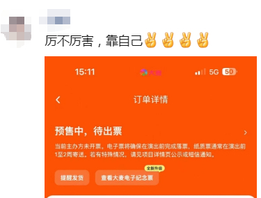 小编观察到,开票约1分钟,三场门票几乎秒空。几家欢乐几家愁,小编的朋友圈里“悲喜两重天”。不得不说,抢票快的小伙伴,发朋友圈炫耀也是火箭速度!