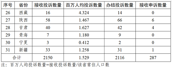 (一)投诉接收情况