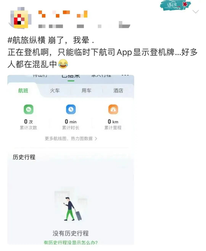随后,“航旅纵横崩了”话题