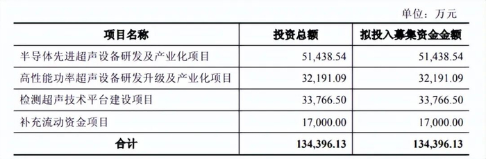 根据定增预案,骄成超声共投向四大项目,其中两大核心产业化项目分别为“半导体先进超声设备研发及产业化项目”和“高性能功率超声设备研发升级及产业化项目”,拟投金额分别为5.14亿元、3.22亿元。