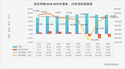 近日,用友网络发布2025年度业绩报告,2025年全年公司营收为91.82亿元,同比微增0.32%;利润总额为-13.89亿元,同比增长32.6%。这是用友继2024年亏损近21亿元后的又一次亏损,虽亏损额略有缩减,但仍处于历史亏损第二高水平。