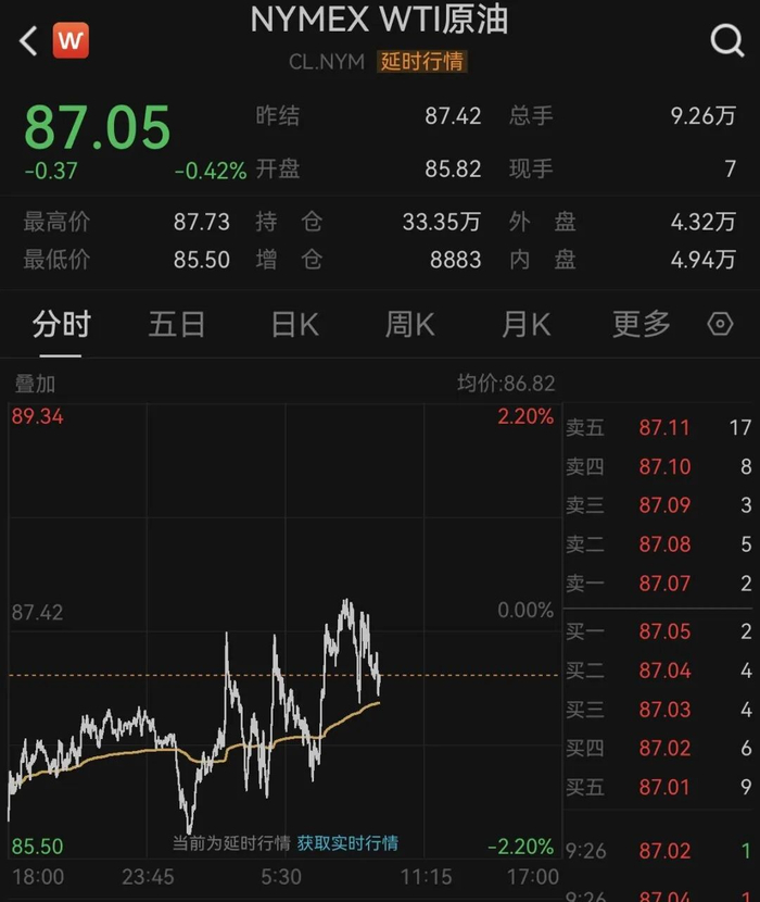此外,原油也出现飘绿走势。