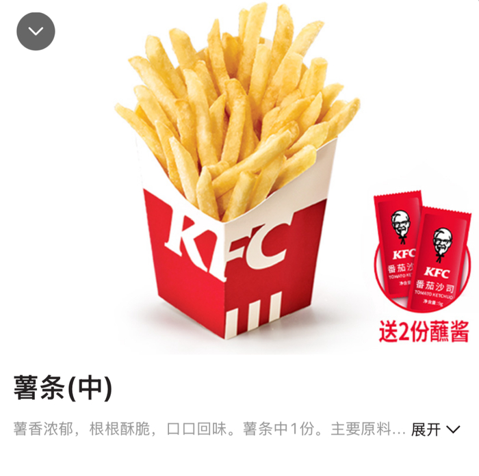 肯德基App显示,目前,天府椒麻香辣粉、香辣孜然风味粉、避风塘风味粉、香菜牛肉风味粉等撒粉售价0.9元/包;糖醋酱、甜辣酱等蘸酱售价1.2元/盒。用户购买一份薯条可获得两包免费的番茄酱,一份黄金鸡块则可选择一盒免费糖醋酱或甜辣酱。此外,收费的蘸酱规格为30克,较此前20克有所增加。