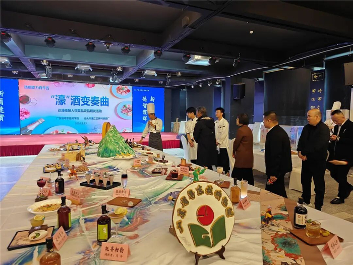 ●桑葚酒奶冻、桑葚酒焗鸡翅、橄榄酒煀排骨……一道道融入美酒佳酿制作出来的精致菜肴充满创意,让人垂涎三尺。近日,粤东技师学院联合濠江区本土酿酒厂,举办“达濠佳酿入馔”菜品饮品研发活动。学院师生发挥专业技能,研发出28道以本土果酒为食材的菜品饮品,以技兴产助力濠江本土企业发展,为“百千万工程”注入技能动能。