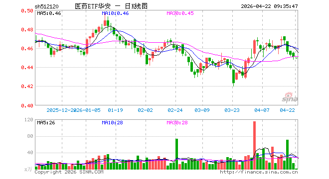 医药ETF华安(512120)开盘跌0.22%,重仓股药明康德跌0.36%,恒瑞医药跌0.27%