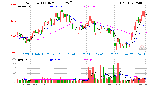 电子ETF华宝(515260)开盘涨0.14%,重仓股立讯精密跌0.55%,寒武纪跌0.90%