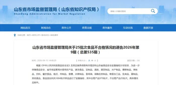 召回、下架、查清产品流向!山东省市场监督管理局公布25批次不合格食品