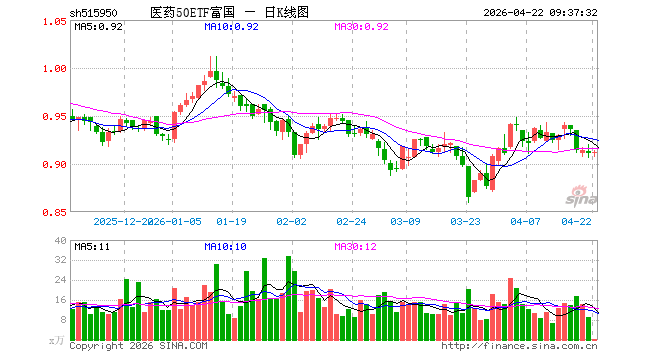 医药50ETF富国(515950)开盘涨0.00%,重仓股药明康德跌0.36%,恒瑞医药跌0.27%