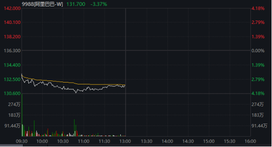 阿里巴巴-W股价亦走低,盘中跌幅一度超过4%。
