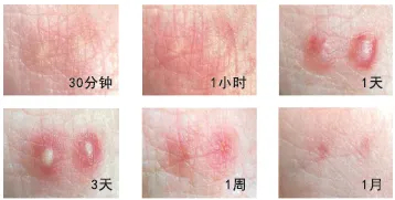 会立即引发剧烈灼热感(红火蚁名称由来),局部皮肤形成红斑、水泡、硬肿,有痒感。