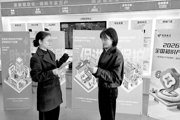 在4月20日至26日全国知识产权宣传周期间,江苏新沂电信围绕“加强新兴领域知识产权保护,加快新质生产力发展”主题,面向用户、员工普及个人信息保护、AI视频数据版权保护等知识,引导公众树立保护知识产权意识,助力营造良好创新环境。 杨肖肖/摄