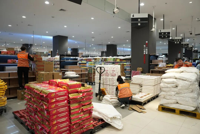 恰逢五一假期前夕,该门店充足备货出行、聚餐所需商品,全力保障民生供应。同时升级便民服务,增设休息区,一站式便民服务区涵盖20余项贴心服务,员工专业热情,全方位提升消费体验。