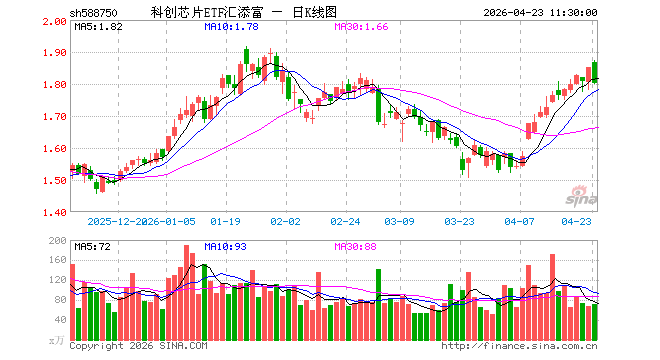 科创芯片ETF汇添富(588750)跌2.59%,半日成交额1.32亿元
