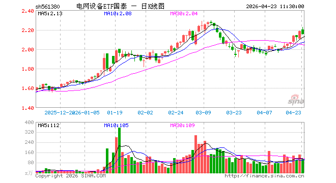 电网设备ETF国泰(561380)跌1.37%,半日成交额2.37亿元