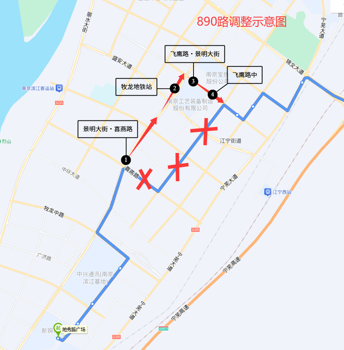 ·890路:南段调整经景明大街行驶,强化牧龙地铁站辐射范围,进一步覆盖滨江南部居住密集区,缩短居民步行进站距离。