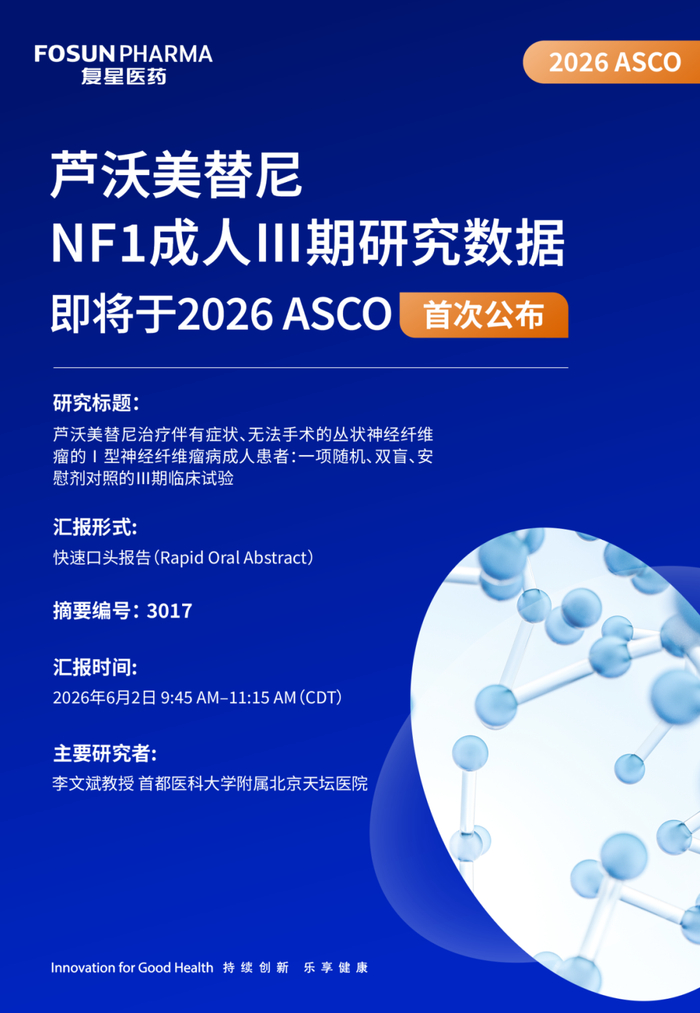 ASCO预告|复星医药复迈宁NF1成人Ⅲ期研究数据将于2026 ASCO首次公布,临床价值持续获验证