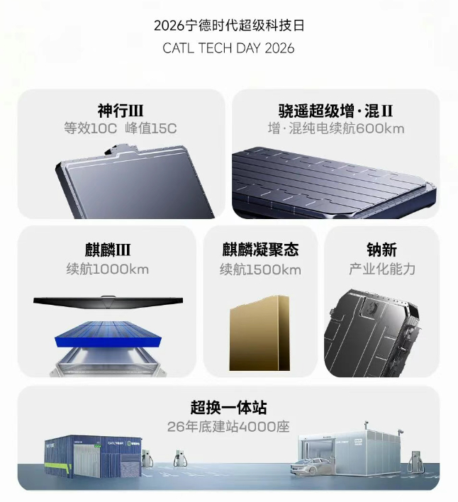另外面对快速增长的增程和混动市场,宁德时代推出了第二代骁遥超级增·混电池。三元版本实现纯电续航600公里、综合续航超2000公里,并且全系标配10C超充能力。这一产品精准切中了增程用户的痛点:日常通勤时600公里的纯电续航足以覆盖一周出行,无需频繁启动增程器;长途旅行时超2000公里的综合续航彻底消除里程焦虑;而10C超充能力则让增程车在公共充电桩上的补能效率与纯电车无异,不再是充电站里“充得慢、占着桩”的尴尬存在。