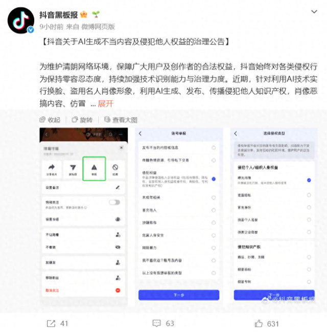 4月23日,@抖音黑板报 发布关于AI生成不当内容及侵犯他人权益的治理公告: