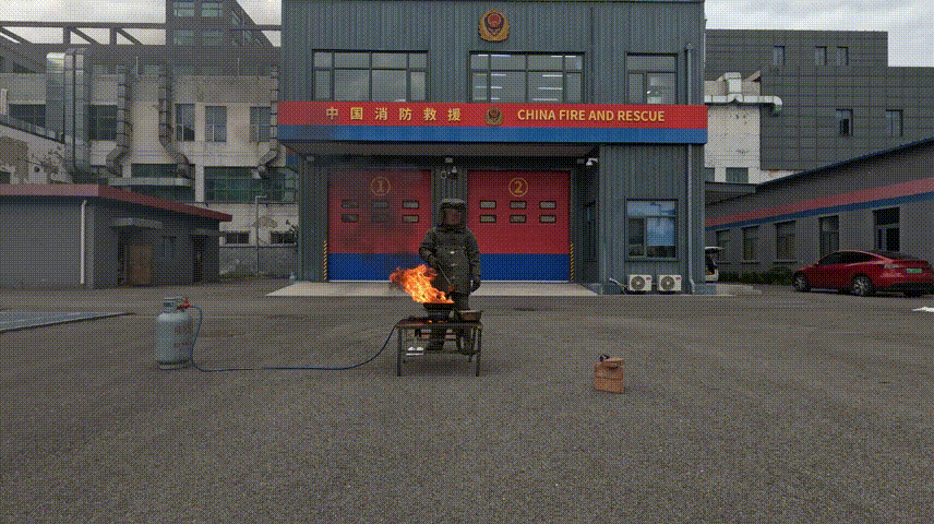 实验中,消防员徒手将常温的同种食用油缓缓倒入起火的油锅中,并未引发剧烈喷溅或沸腾现象,锅中火焰逐渐熄灭。